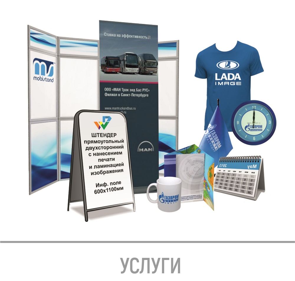 Широкий спектр услуг и товаров, в том числе заготовок и материалов для рекламно-сувенирной продукции